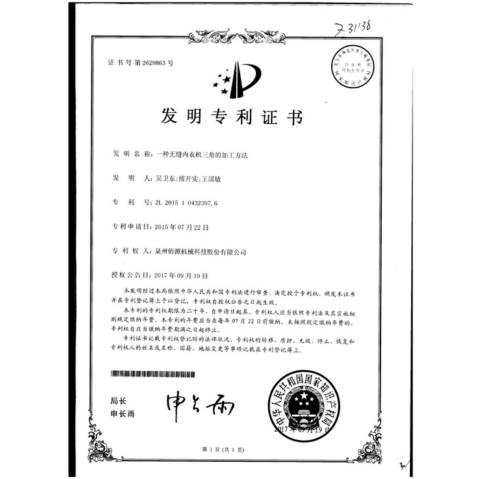 發(fā)明-一種無縫內(nèi)衣機三角的加工方法